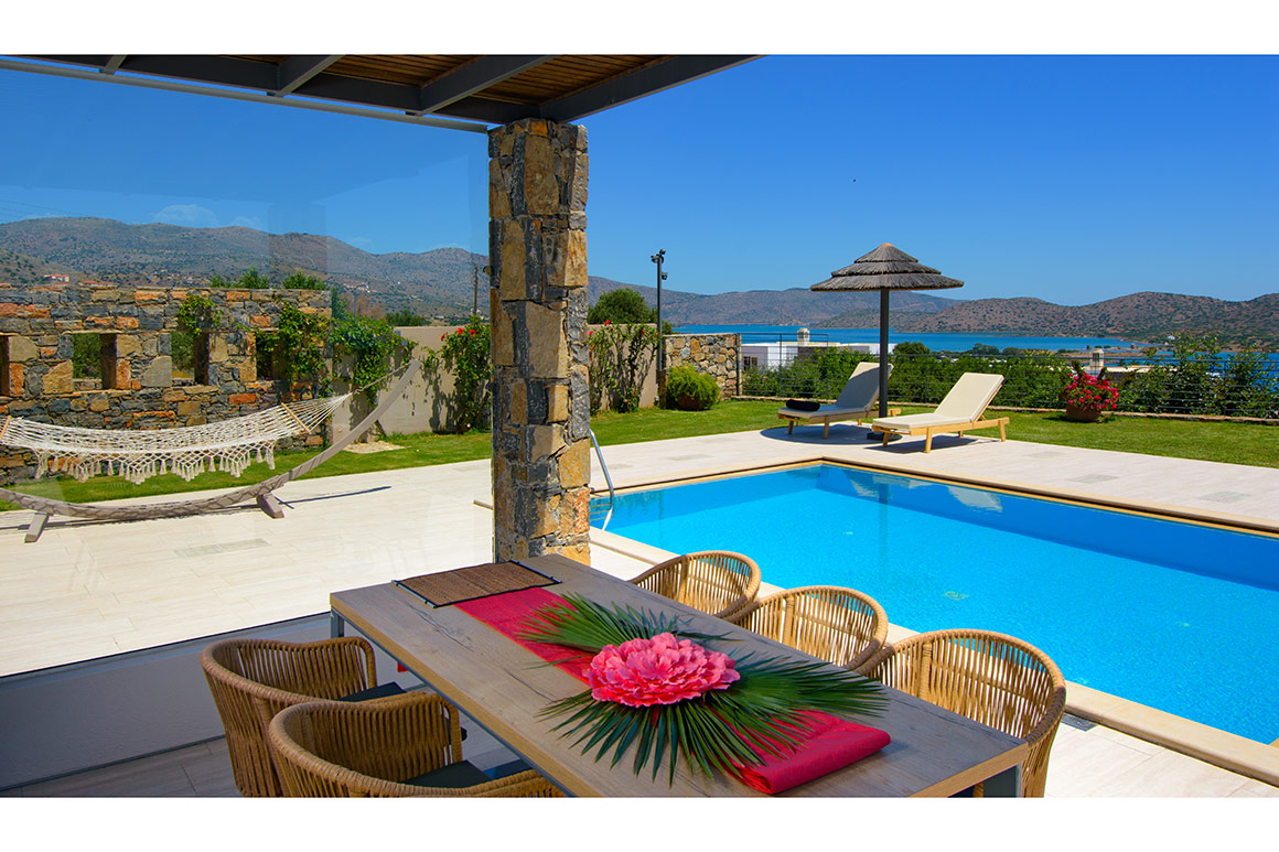 The villa provides 3 bedrooms that can host from 2 to 6 persons making it the perfect place for luxury and thoroughly comfortable accommodation in Elounda Crete.